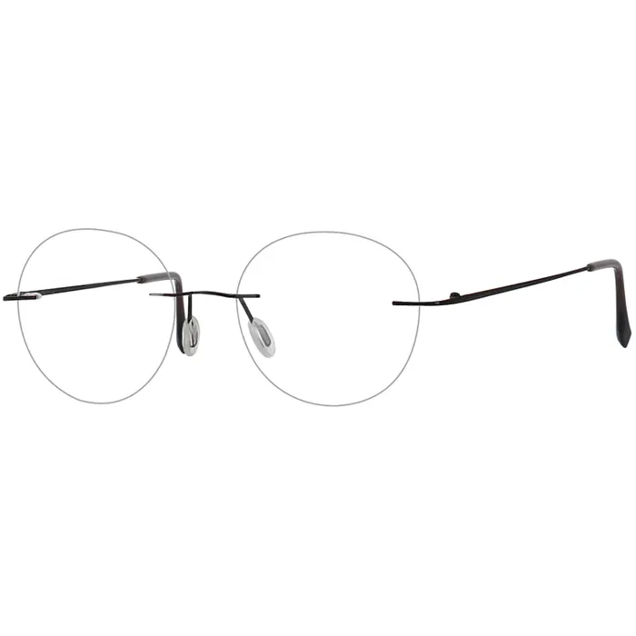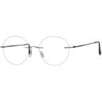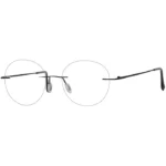 Rimless Eyeglasses 137449-c are rimless black metallic frames with circular lenses, which appear traditional and professional. These frames